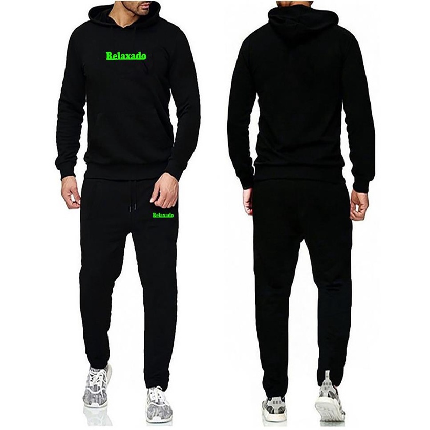Conjunto Moletom Blusa De Frio + Calça Abrigo Modelo Canguru com Cordinha Neon Estampado