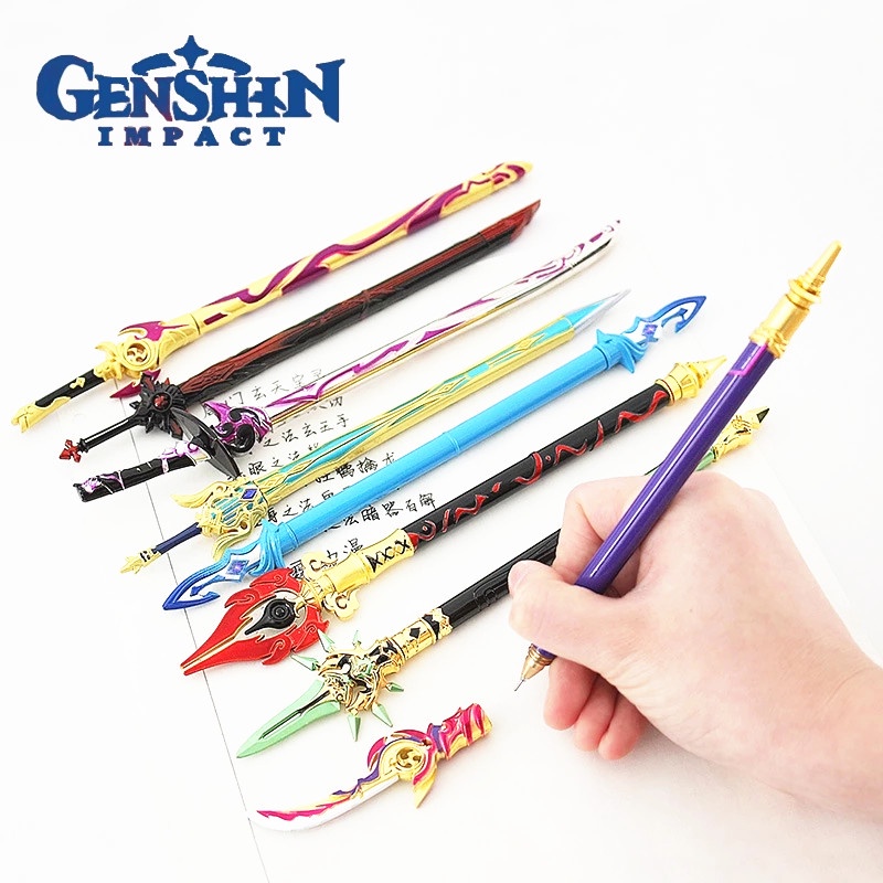 Game Genshin Impact Model Metal Pen Stationery Ballpoint Pen Cartoon Anime Cosplay Pens Student Office Writting Souvenir 22 cm