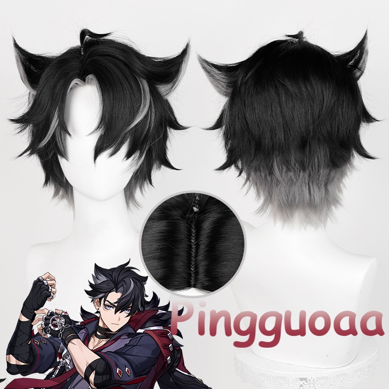 Genshin Impact Fontaine Wriothesley Cosplay Wig 30cm Black Grey Gradient Wigs Cosplay Anime Wigs Heat Resistant Synthetic Wigs
