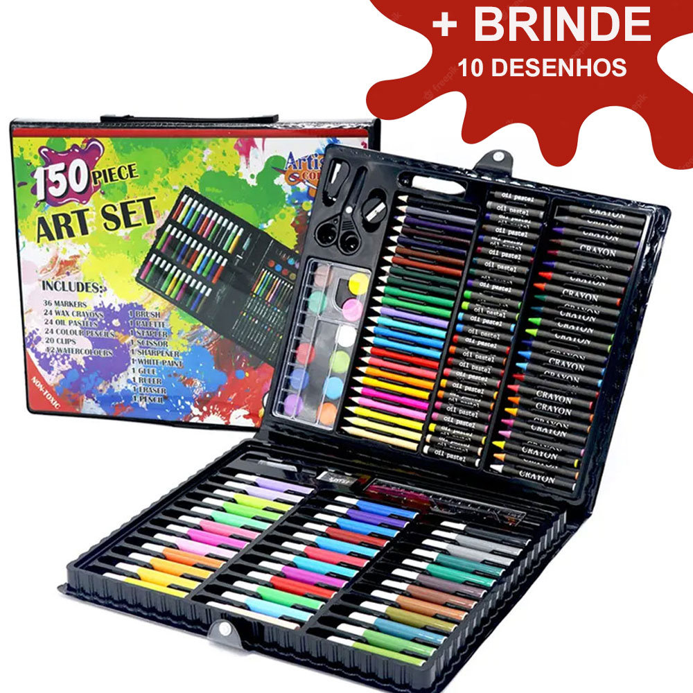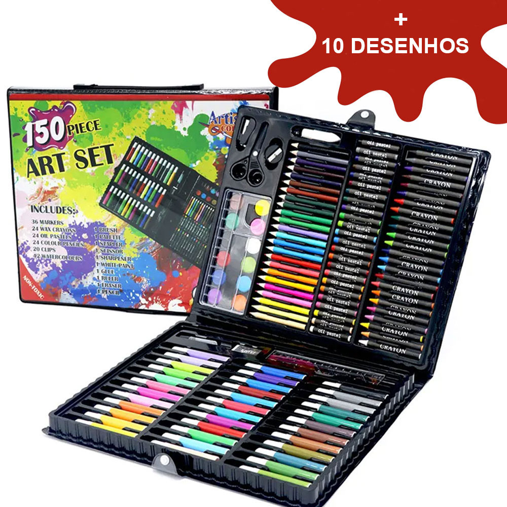 Estojo 150 Peças Escolar Maleta Para Desenho Pintura Infantil Completa de Az