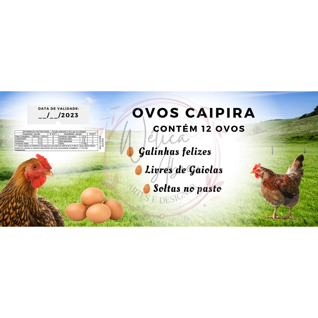 200 Rótulos para cartelas de Ovos Caipira (Tamaho 6,5x15cm)