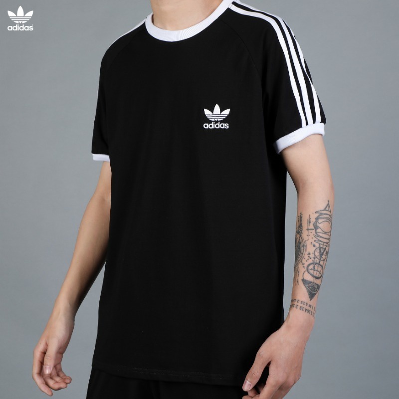 Adidas 100 % Clover Men's Classic Três Listras Camisetas Clássicas De Casal De Cores Bloqueio De Manga Curta De Verão Respirável Quick Dry Retro Half Sleeve