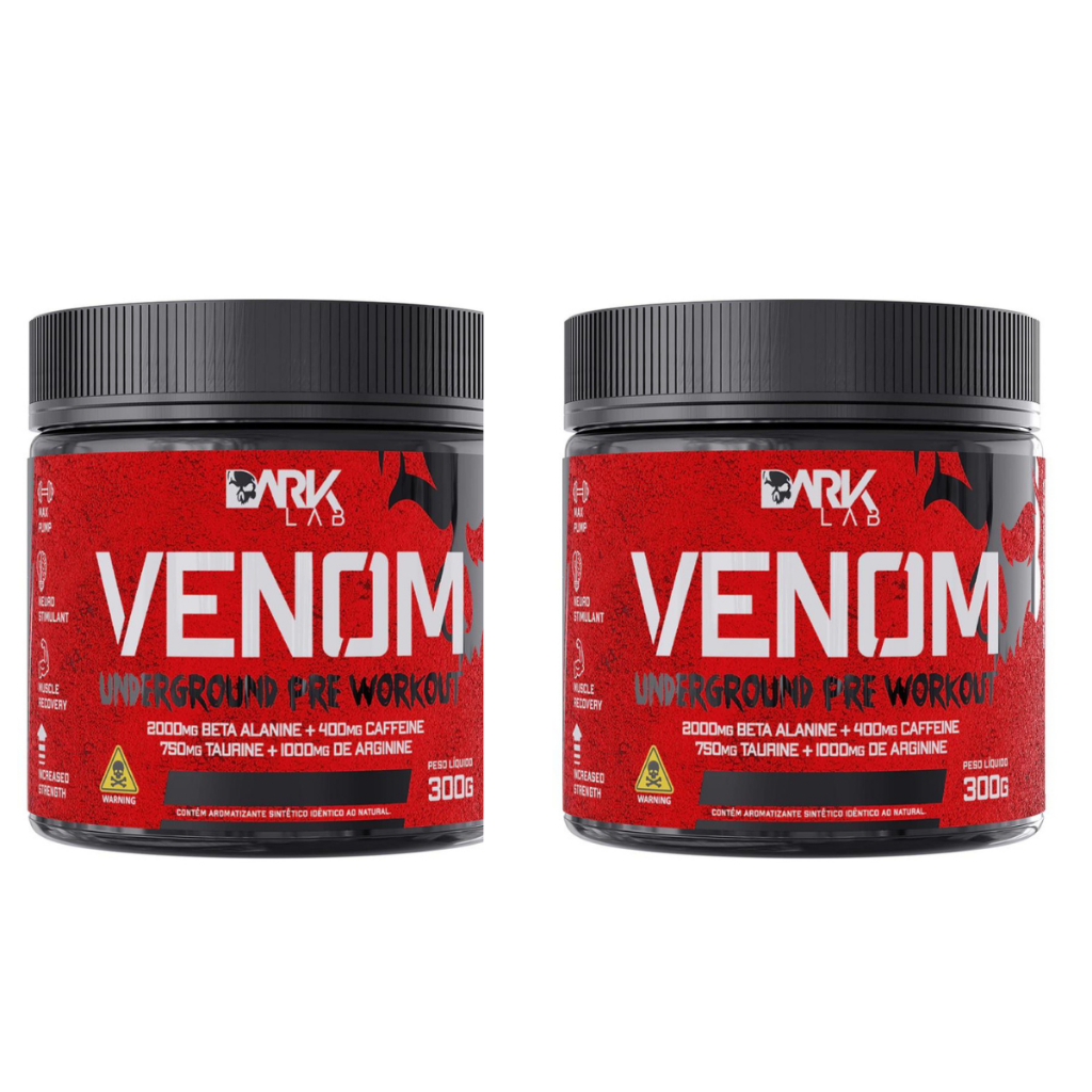 Kit 2x Pré Treino Venom 300g Underground Pré Workout Dark Lab, Beta Alanina, Cafeina, Taurina, Arginina