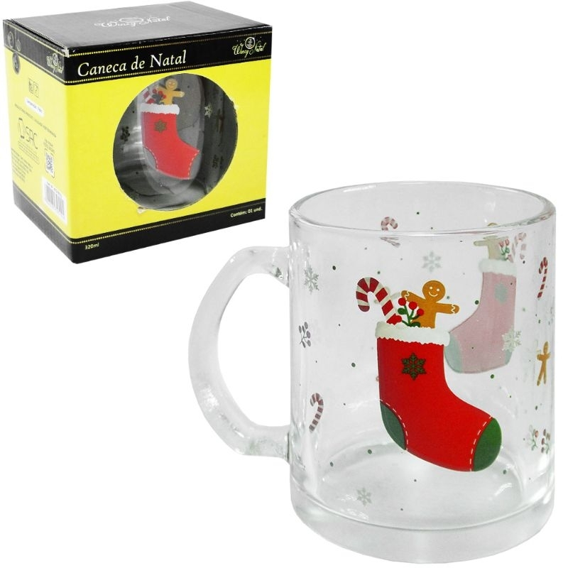 Caneca De Vidro Feliz Natal Natalina 300ml - 320ml Unidade Copo