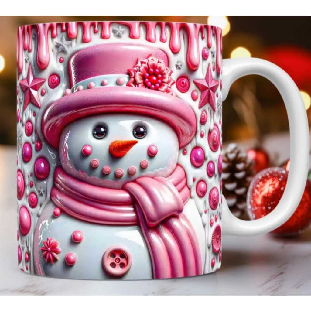 Caneca Natal Papai Noel Presente Natalino Enfeite Ceia Boneco de Neve Efeito 3D 325ml