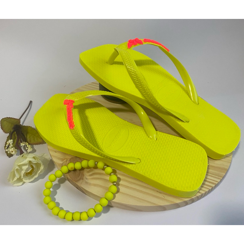 Chinelo Feminino Havaianas Neon Bico Quadrado Personalizado Borboletas