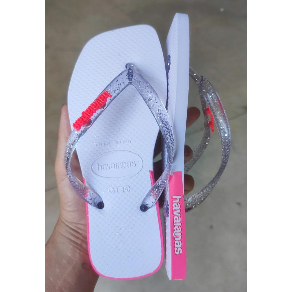Chinelo Havaianas Feminino Personalizado Brasileirinha com Gliter Bico Quadrado FORMA PEQUENA INDICAMOS COMPRAR UM NÚMERO MAIOR