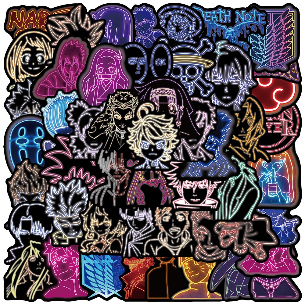 50 Pcs Dos Desenhos Animados Bonito Demônio Slayer Naruto Death Note One Piece Neon Iluminação Adesivo Impermeável Skateboard Retro Vinil