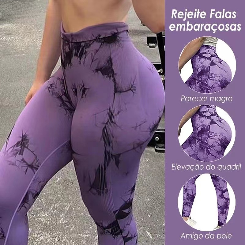 Tie-dye Calça Legging Academia Levanta Bumbum Sem Costura Cintura Alta Yoga Roupa Fitness Feminina