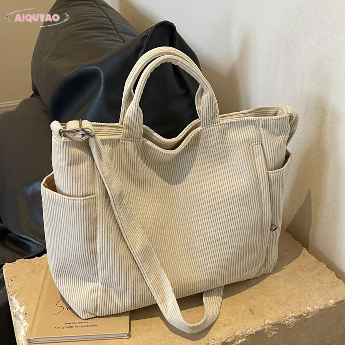 Bolsa Feminina Feminina Corduroy Bolsa Feminina de Grande Capacidade Bolsa Feminina de Mão Simples Cor Sólida Bolsa Mensageiro