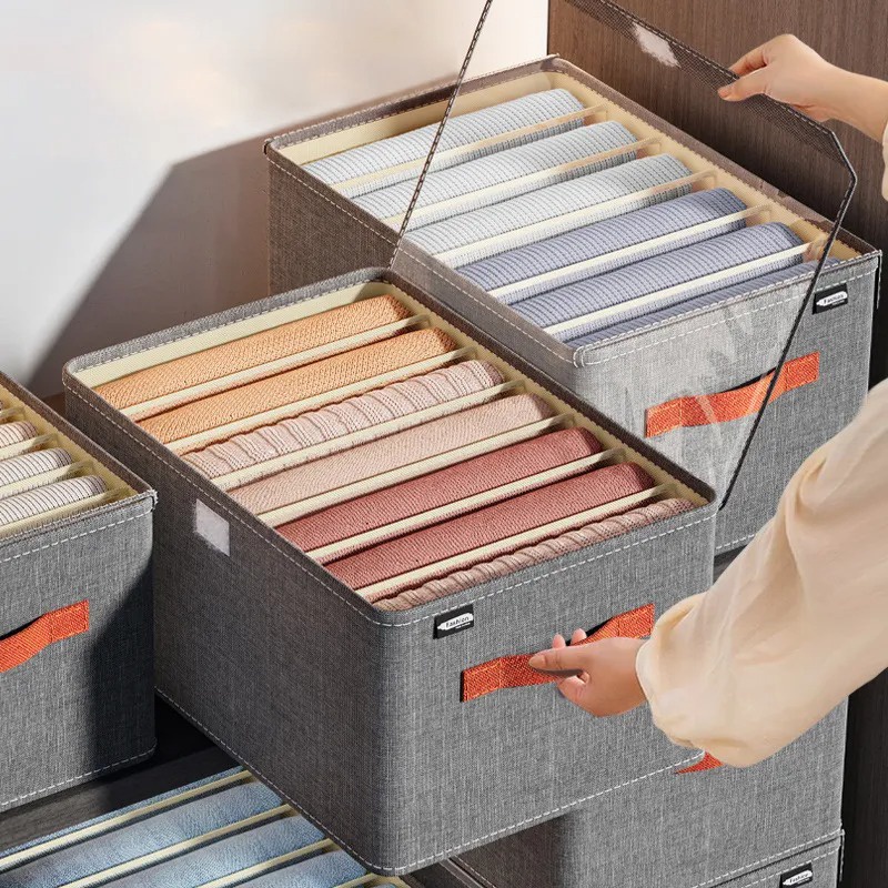 Cesto Organizador de Guarda Roupas Multiuso Com Tampa e Divisórias Reforçado Caixa para Armazenar Rígido