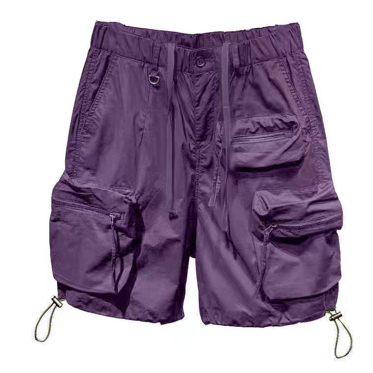 Calções masculinas de verão high-end, roupas de trabalho, shorts masculinos estouram a tendência de calças casuais folgadas de cinco pontos, calças roxas com vários bolsos, moda de nicho masculino