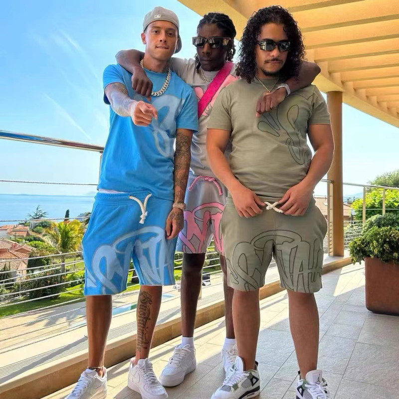 Conjunto De Roupas Esportivas De Verão SYNA WORLD – Shorts E Camiseta Casuais De Algodão Puro Estilo Hip-Hop De Rua Alta