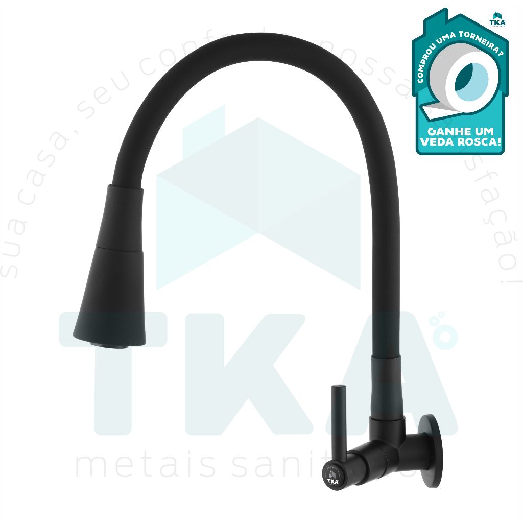 Torneira Gourmet Cozinha Parede Pia Flexível Preta Abs 1067