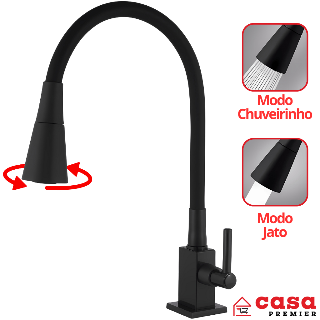 Torneira Gourmet Cozinha Mesa Bancada Pia Flexível Preta Dupla Função Abs