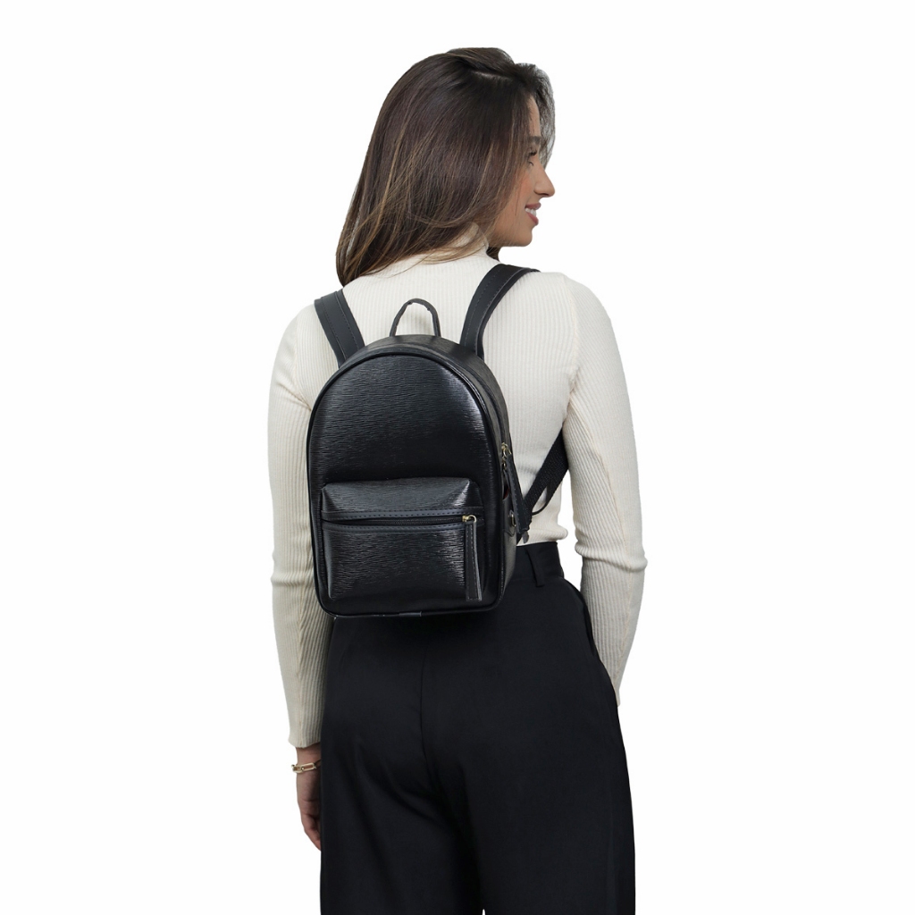 Bolsa Mochila de Couro Universitária Unissex Feminina Masculina Pequena Reforçada Com Cabo de Aço Preta Notebook