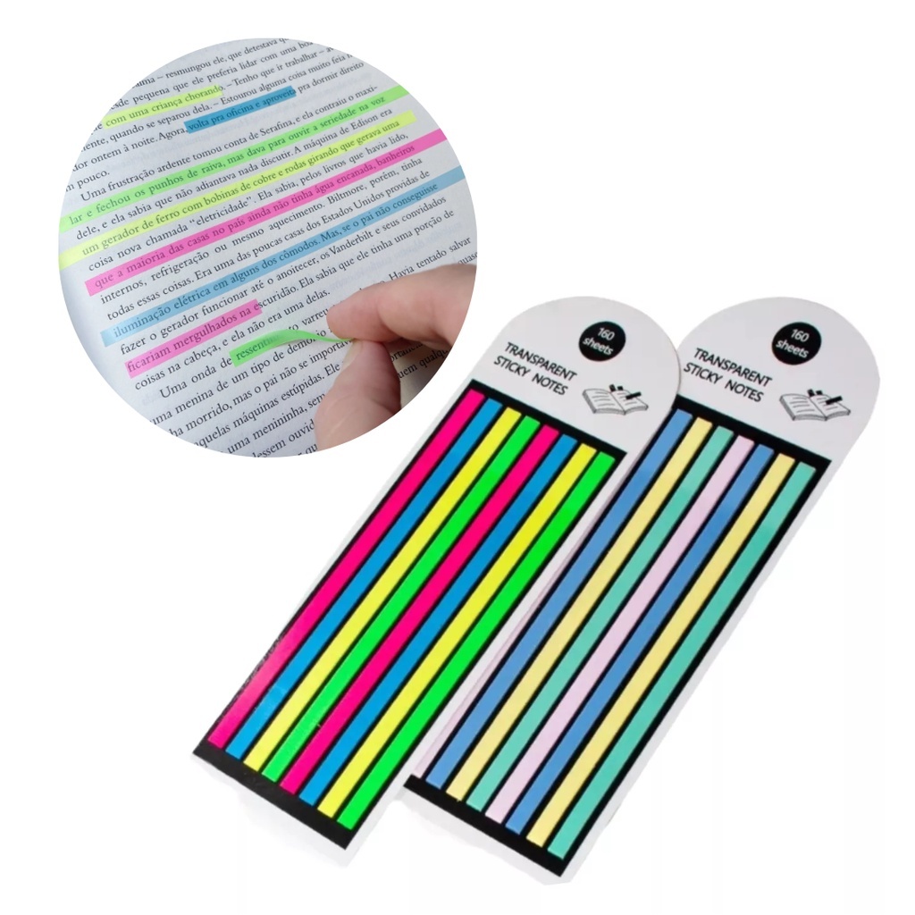 Notas Adesivas Fininhas Marcador de Página Livro Agenda Transparente Marca Texto Papelaria Material Escolar