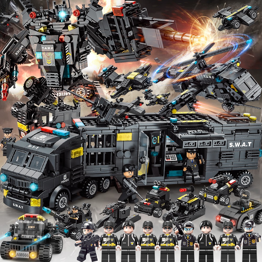 1.000pcs Blocos de construção montados para crianças Meninos Brinquedos Educativos para Carros Brinquedos para Carros Robô Tanque Porta-aviões Modelo de Navio de Guerra Educacional Série de Polícia de Cruzeiros Série Militar Mecha