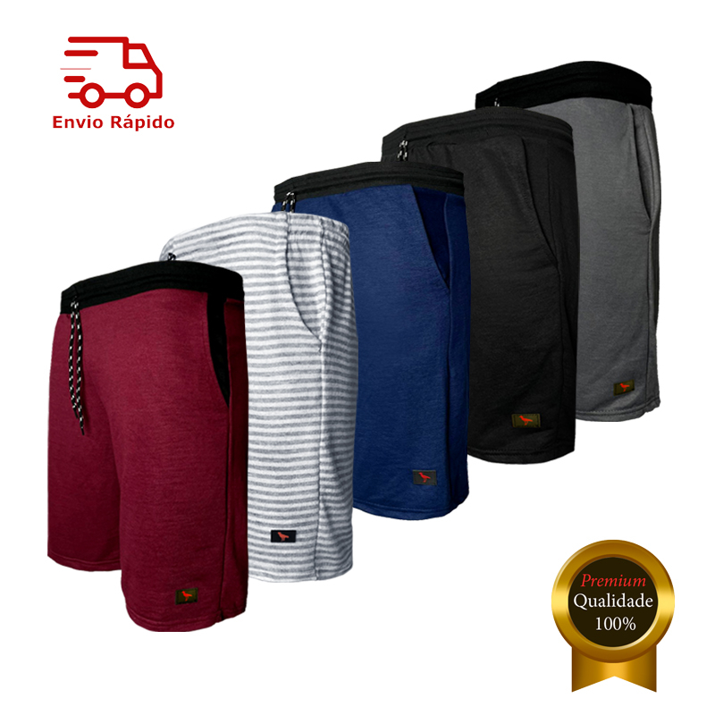 Kit 5 Bermudas Moletom Academia Treino Masculina Algodão atacado Original Lisa Listrada