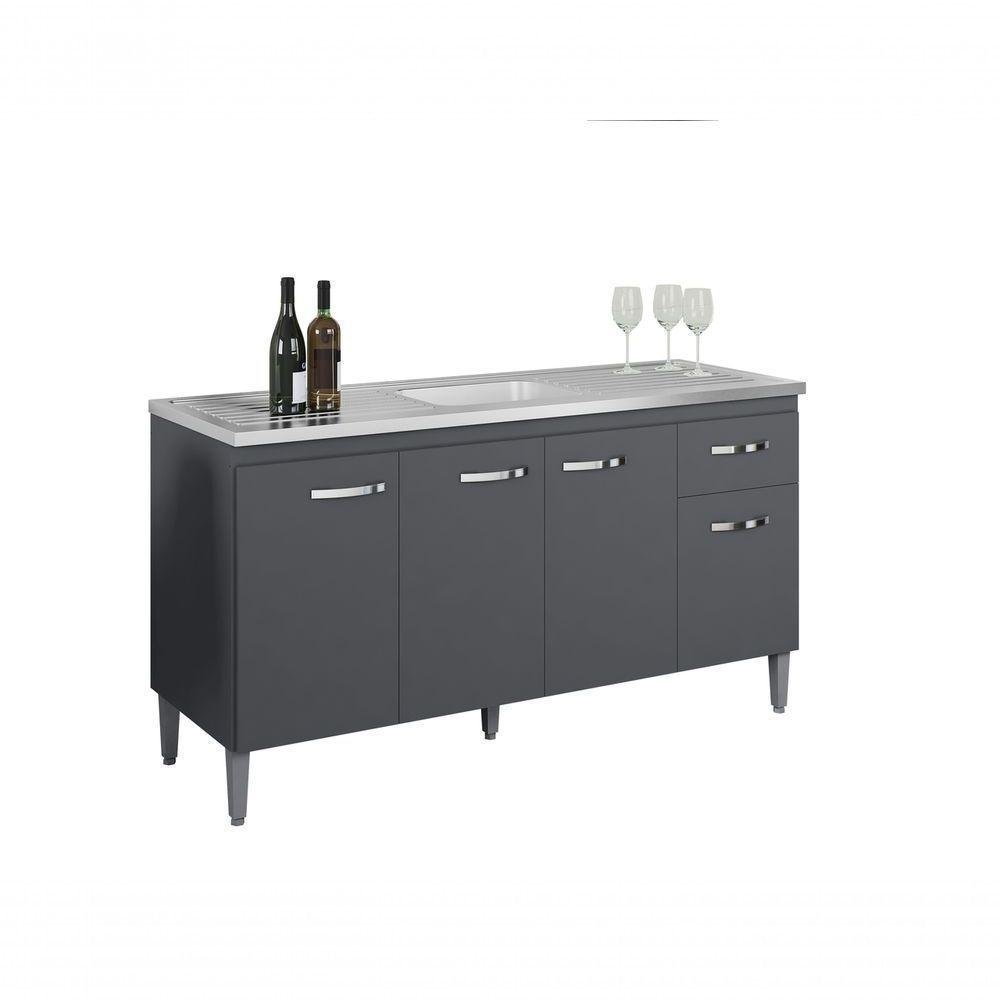 Balcão Gabinete para Pia Gabriela com Tampo 150cm 4 Portas 1 Gaveta Cinza Fosco