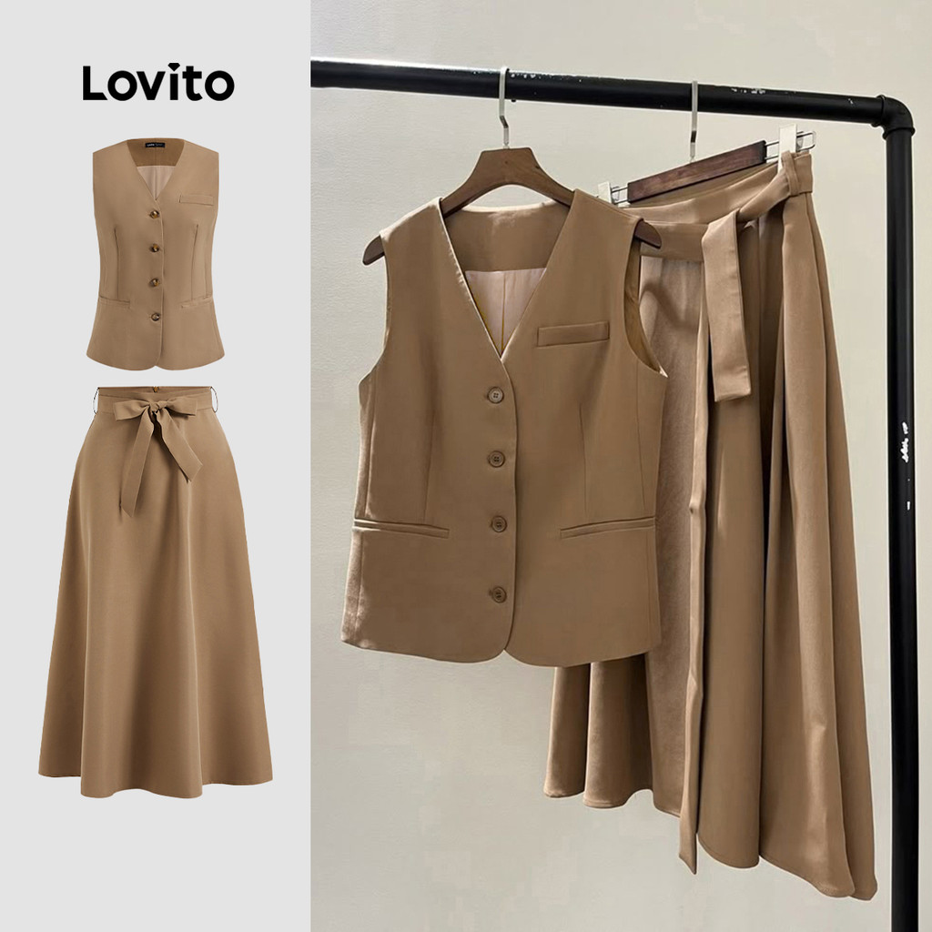 Lovito Tops Ou Calças Elegantes Com Bolso De Botão, Verão/Primavera, Tops Ou Calças Com Cinto Para Mulheres LBL22636