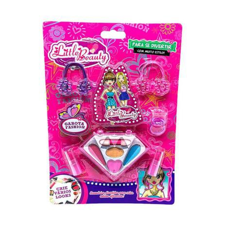 Estojo de Maquiagem Infantil Morango Sombras Batons Elástico para Cabelo Aneis Little Beauty