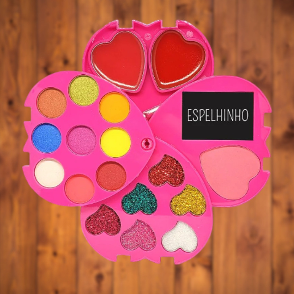 Estojo Infantil de Maquiagem Sarah's Beauty Coração Cores Coloridas Com Espelho