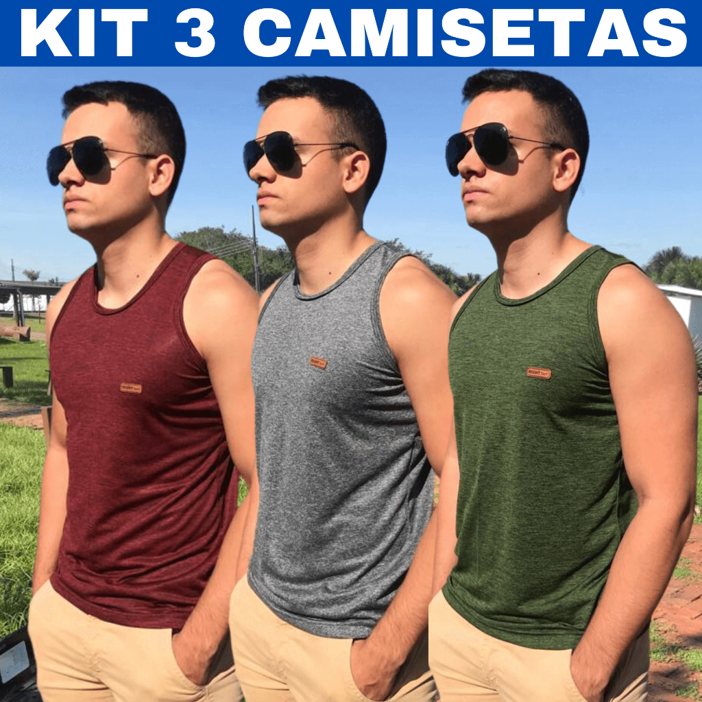 Kit 3 Camiseta Masculina Regata Machão Dry Fit Básica Academia Treino Verão
