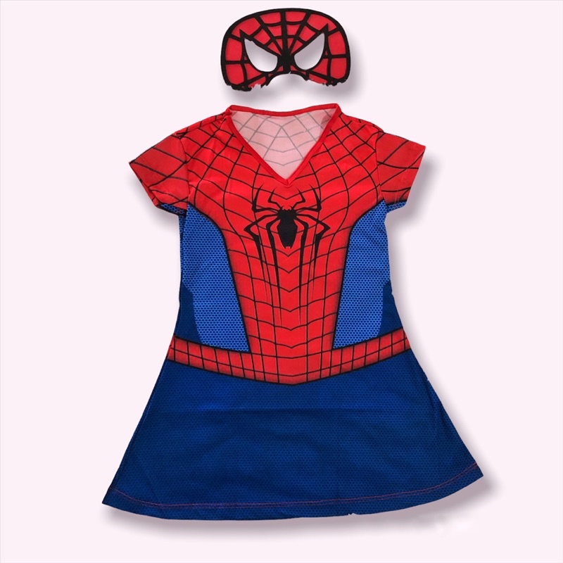 Fantasia Temática Vestido Aranha Infantil Feminina Princesa Barato Menina Promoção Máscara