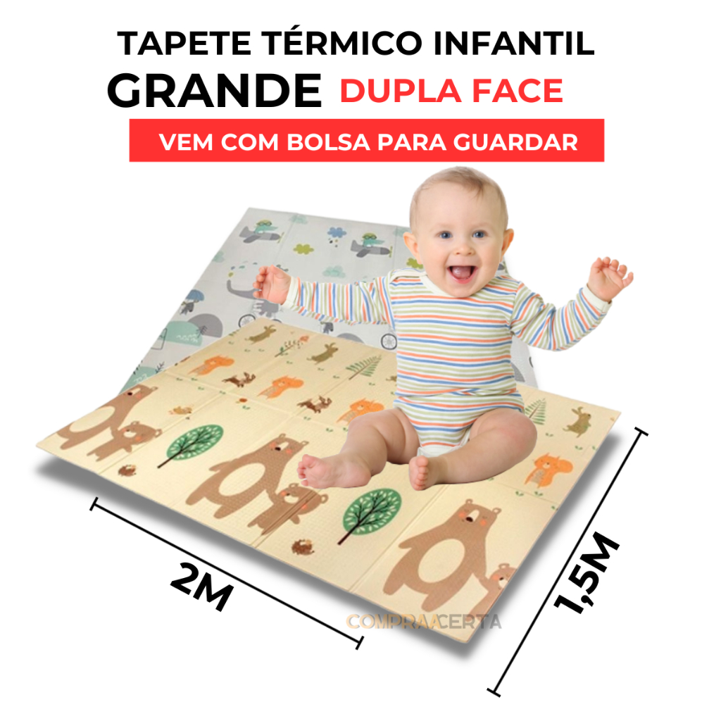 Tapete Térmico Infantil Bebê e Criânças Emborrachado Dupla Face Dobrável Macio 2m x 1,5m