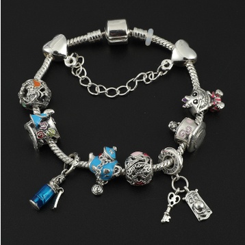 Pulseira de Berloques Aço Banhada a Prata Alice no País das Maravilhas Promoção