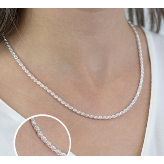 Corrente De Prata 925 (Banhada) Cordão Baiano Masculina Feminino Unissex 60cm Maciça 2mm Corrente trançada Corrente blogueiro Corrente da moda Lançamento Promoção Corrente Banhada A Prata