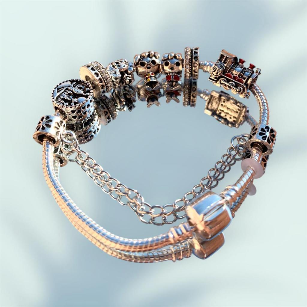 Pulseira de Berloques Aço Banhada a Prata Harry Potter Hermione Ron Expresso Hogwarts Promoção