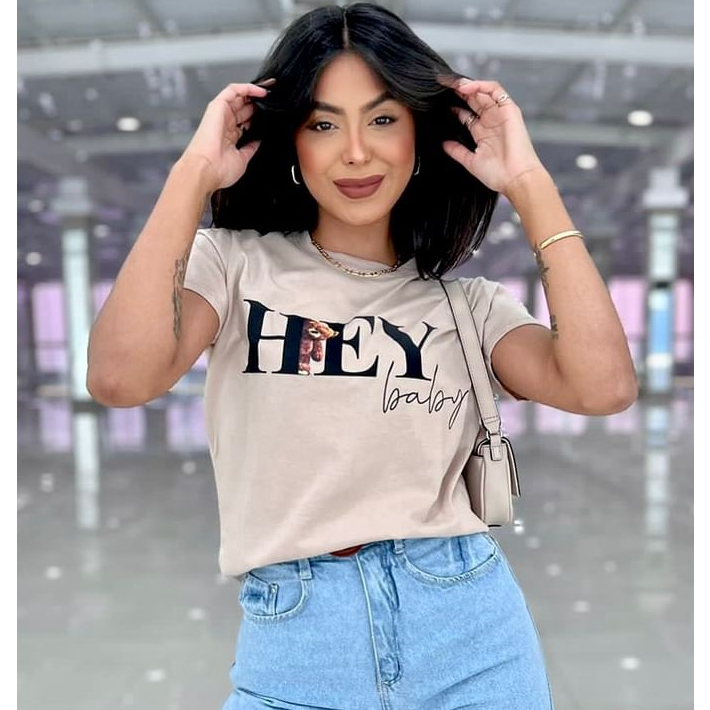 Blusa T-shirt plus size 100% algodão moda feminina blogueira nova coleção camiseta leve e confortável