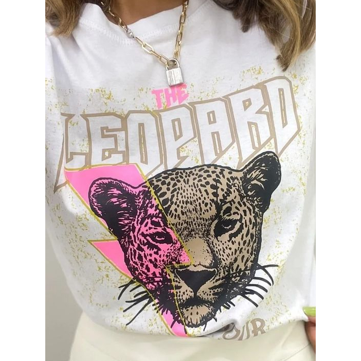 T-shirt Feminina 100% algodão leopardo moda blogueira