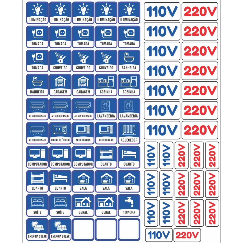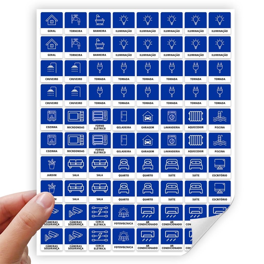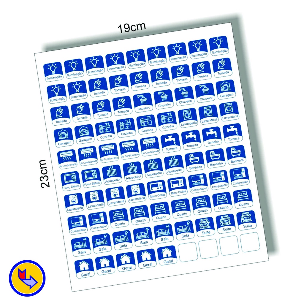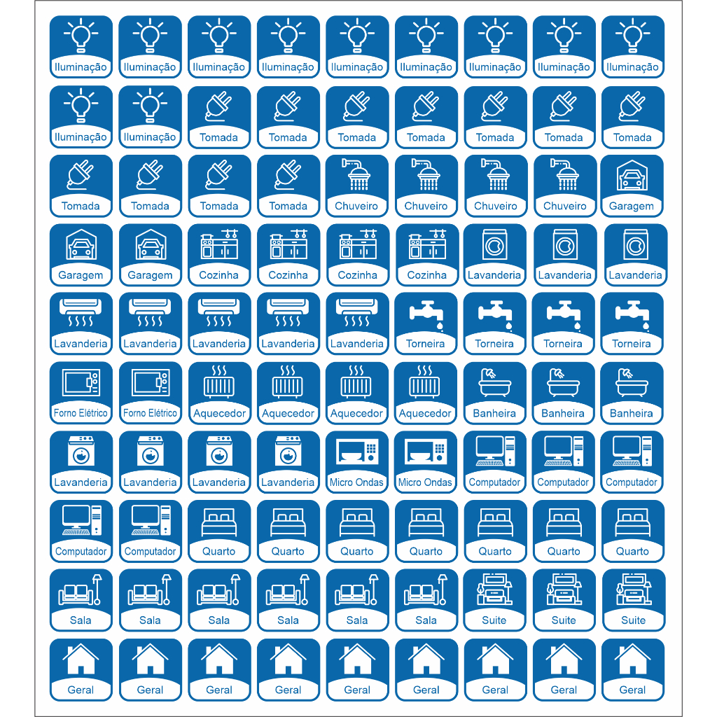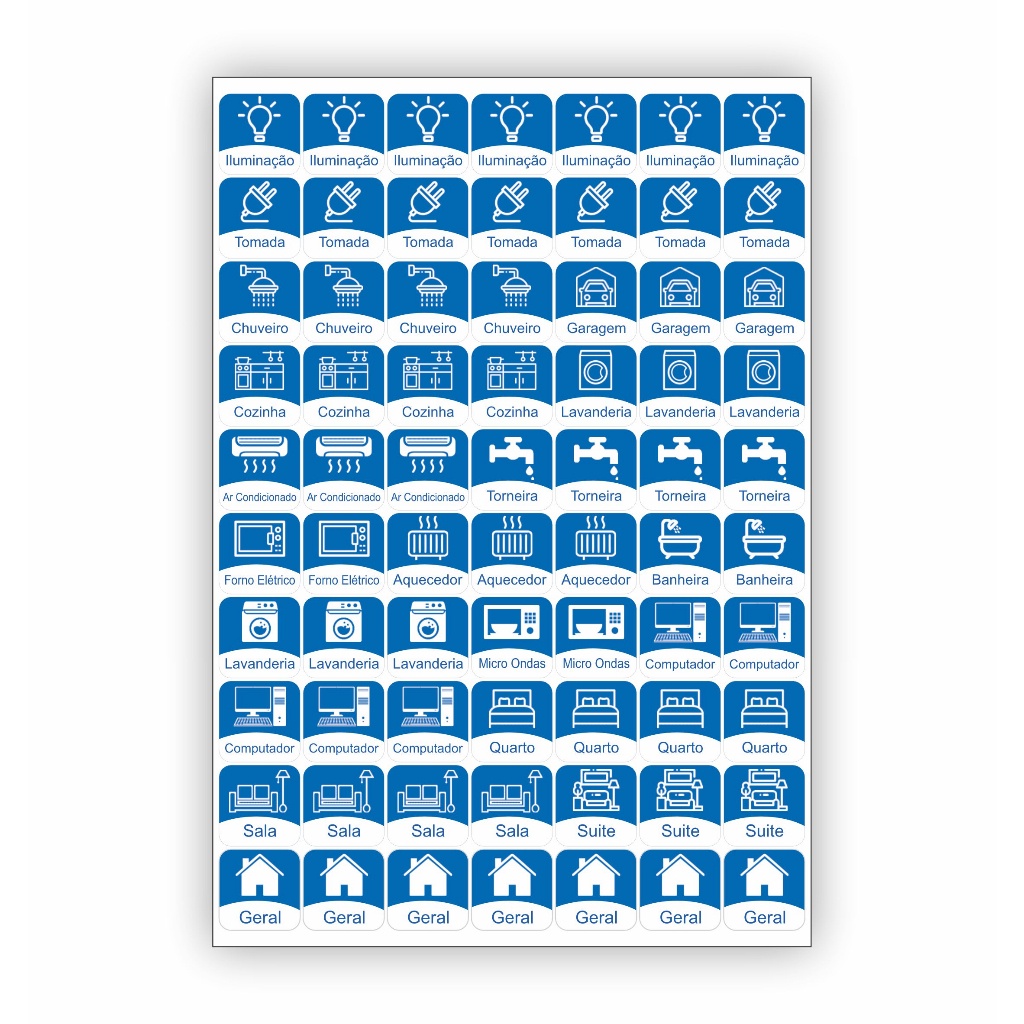 Kit 80 Etiquetas Adesivo Disjuntor Quadro de Força Energia Azul Quadro de Distribuição 80 Unidades