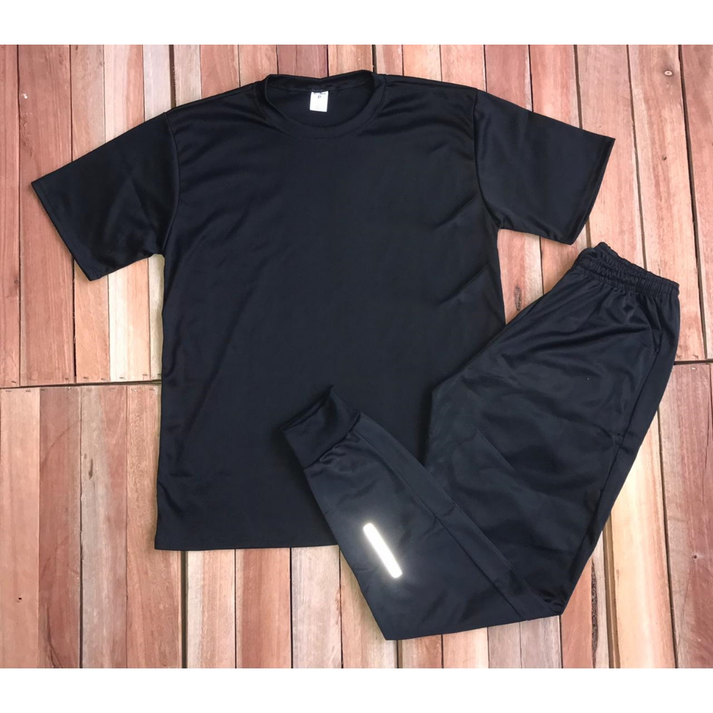 Kit Masculino Dri Fit Camiseta Preta Símbolo Pequeno + Calça Preta Refletiva