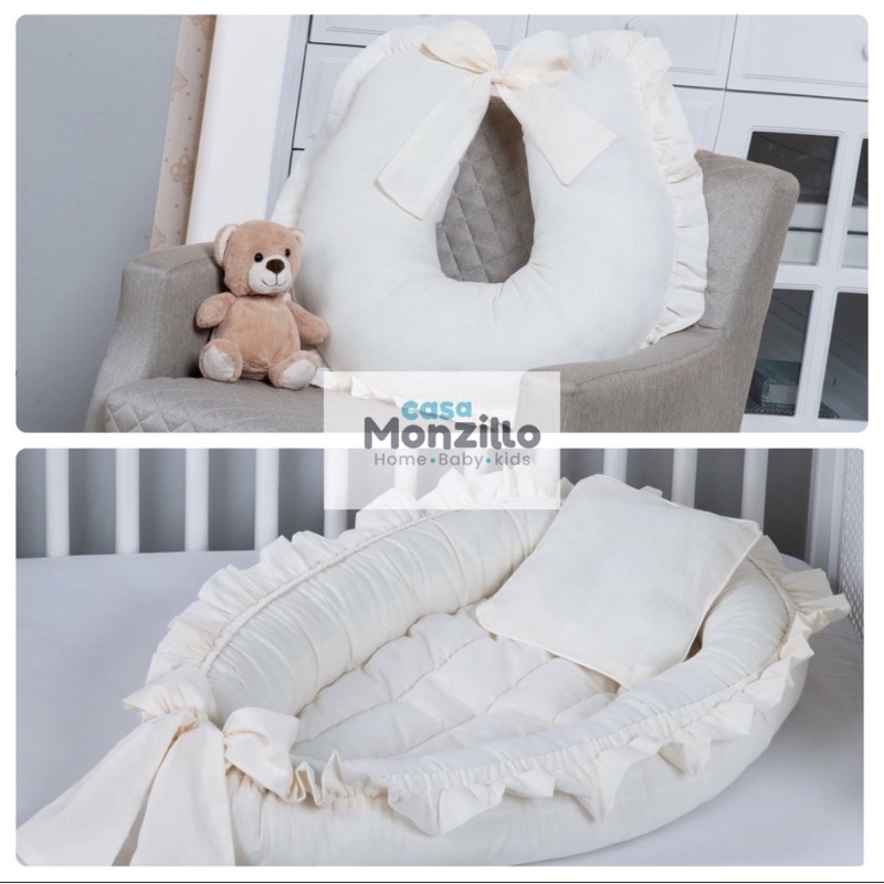 Combo Ninho Redutor de Berço + Almafada Amamentar Grande Babados várias cores