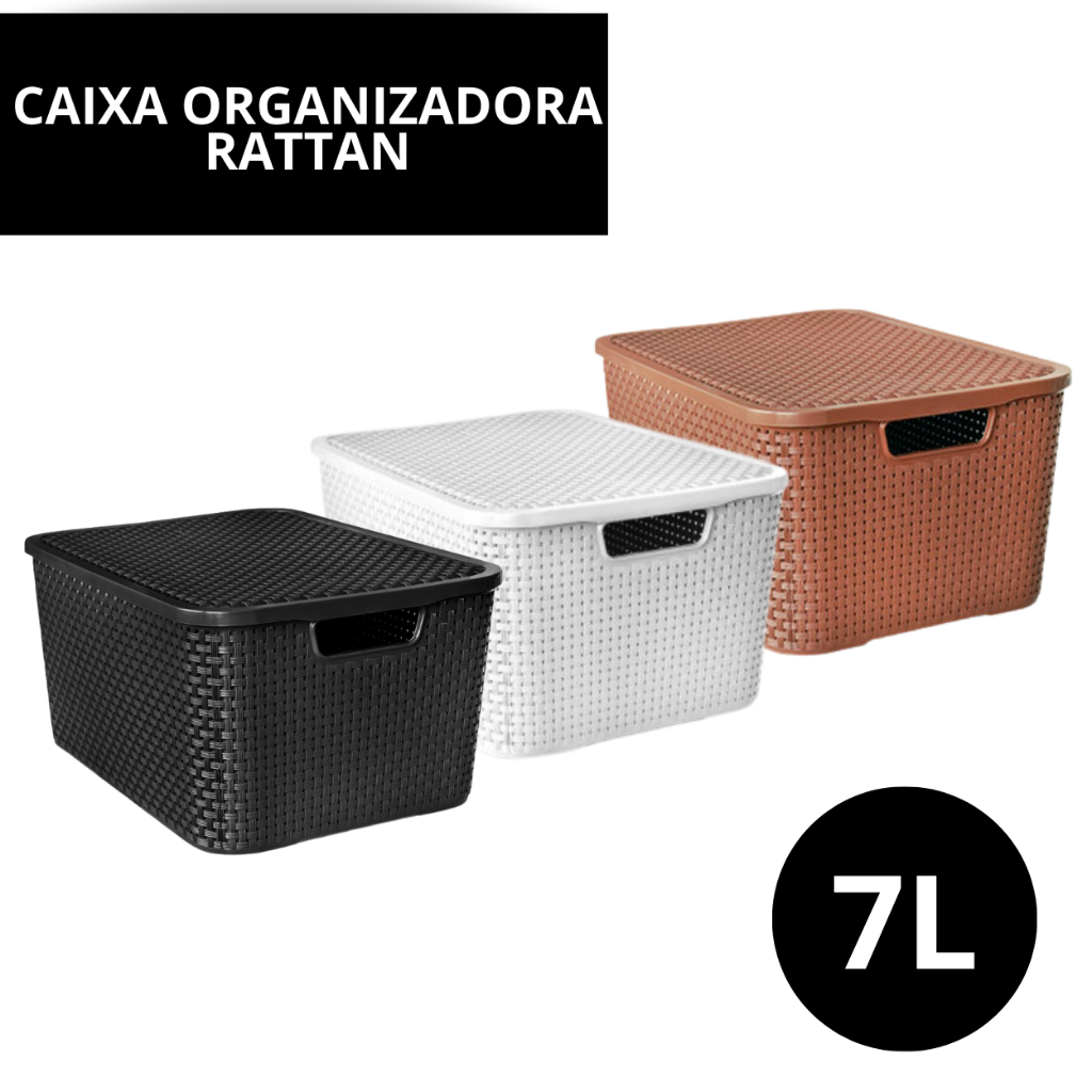 Caixa Cesto Organizadora Rattan 7L Com Tampa Preto Empilhável Organizador De Brinquedo Roupa Suja Caixa C/tampa 7 litros Marrom Branco Oferta Promoção