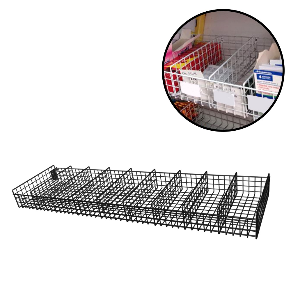 Cesto Organizador Expositor com Divisões para Trilho Cremalheira para Farmácia Remédios com 9 Divisórias