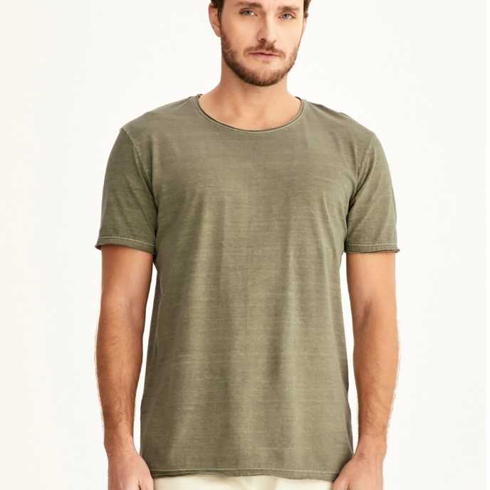 Camiseta Masculina Gola Canoa Básica Corte a fio Estonada de Algodão Premium que Não Encolhe