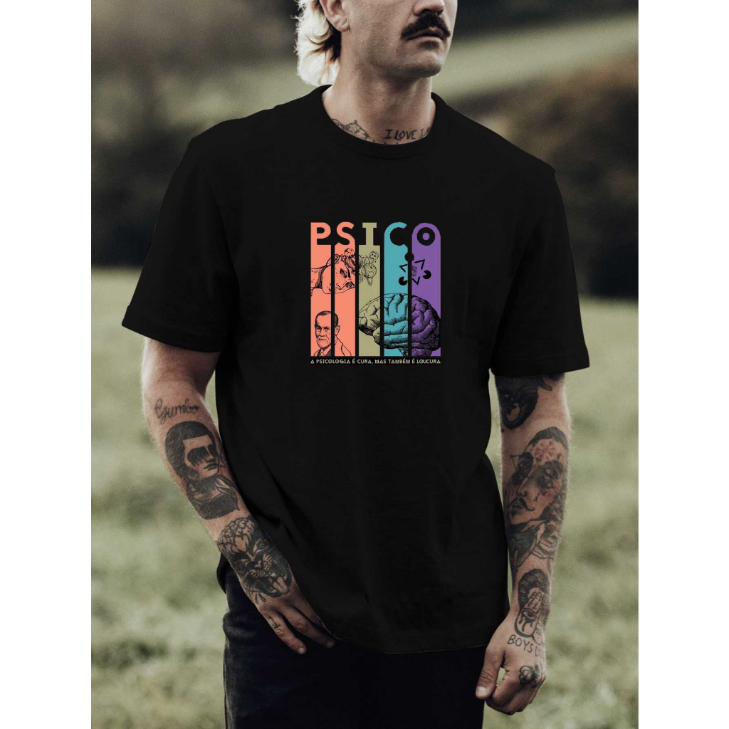 Camiseta Masculina Estampada Psicologia É a Cura Frases Profissões Várias Cores 100% Algodão Premium