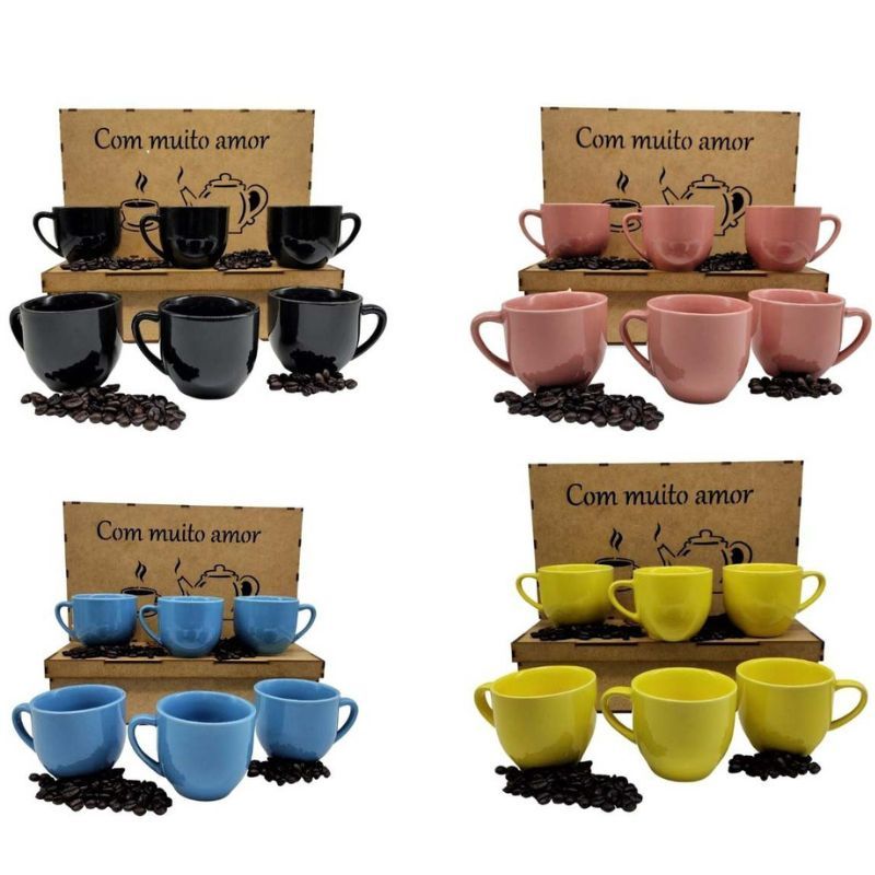 Jogo 6 Xícaras De Café Chá Com Suporte Pires Coloridas 210 ml