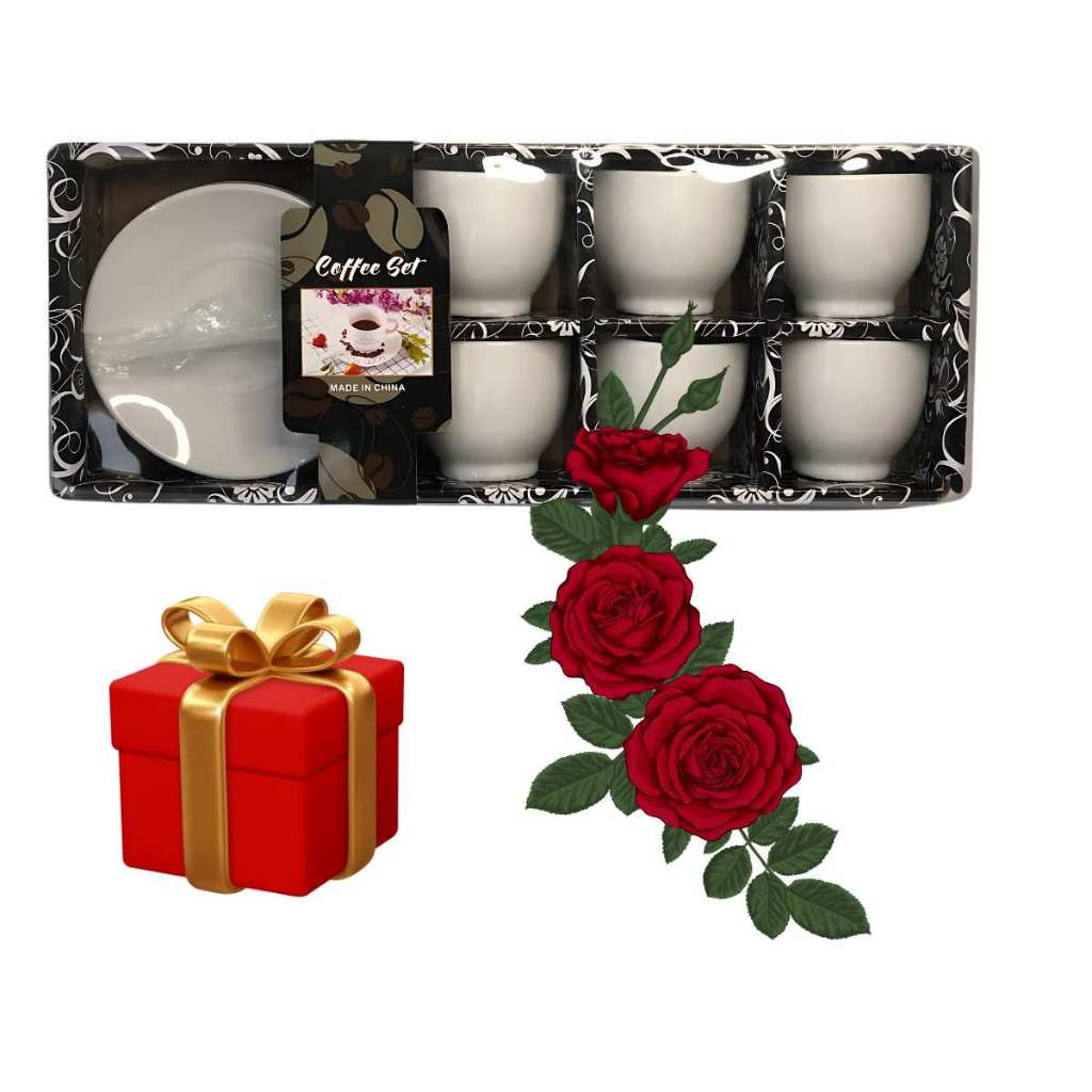 Jogo de 6 Xícaras de Porcelana Peças Branca com Pires Canecas para Café e Chá