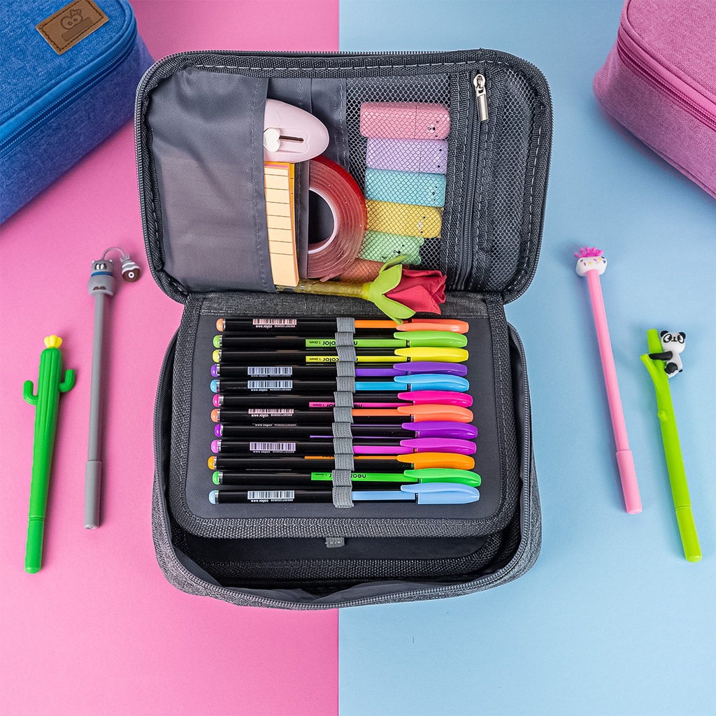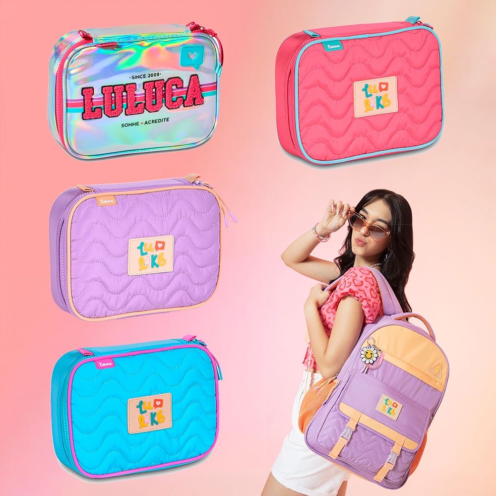 Estojo Luluca Box Grande com 36 Elásticos Universitário Youtuber Meninas Capacidade para 100 Pens Lápis Canetas Partições