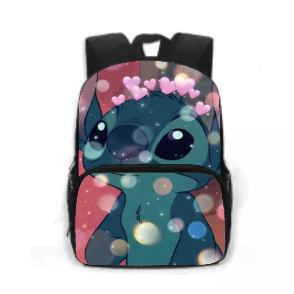 Mochila Escolar Feminina Stitchi Corações Bolsa De Costas Volta As Aulas Material Escolar