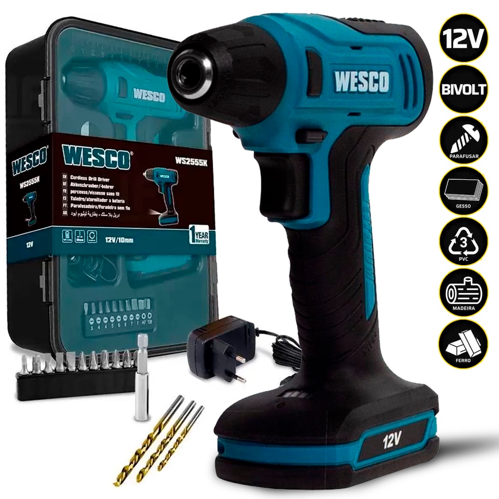 Furadeira Elétrica Parafusadeira C/ Bateria Íon Lítio Sem Fio Bivolt 12V