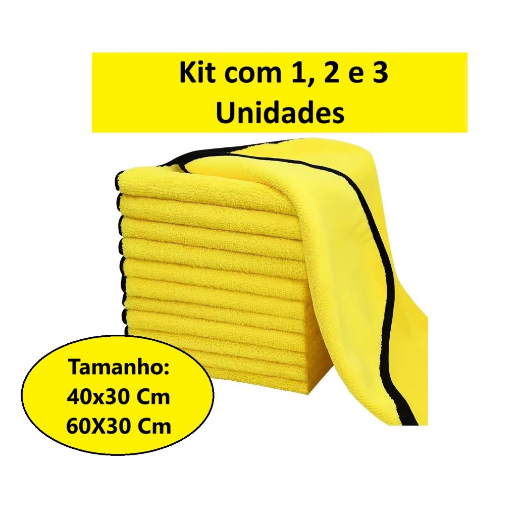 Kit 1, 2 e 3 Flanelas Pano Microfibra Automotiva Premium 30x40 e 30x60 Cm Para Lavagem de Carro