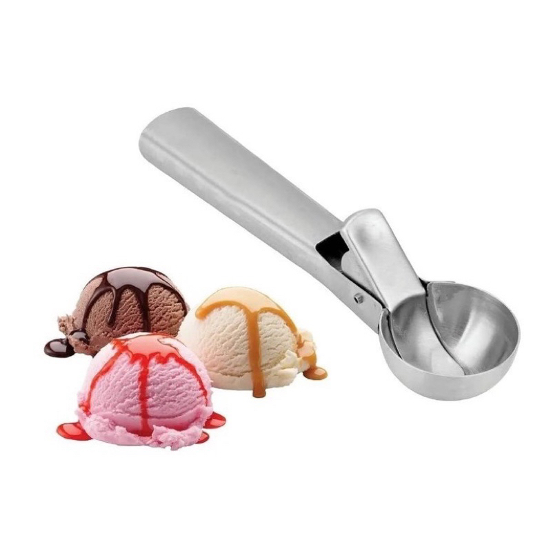 Colher Concha Pegador De Sorvete Inox Bola Com Ejetor Profissional