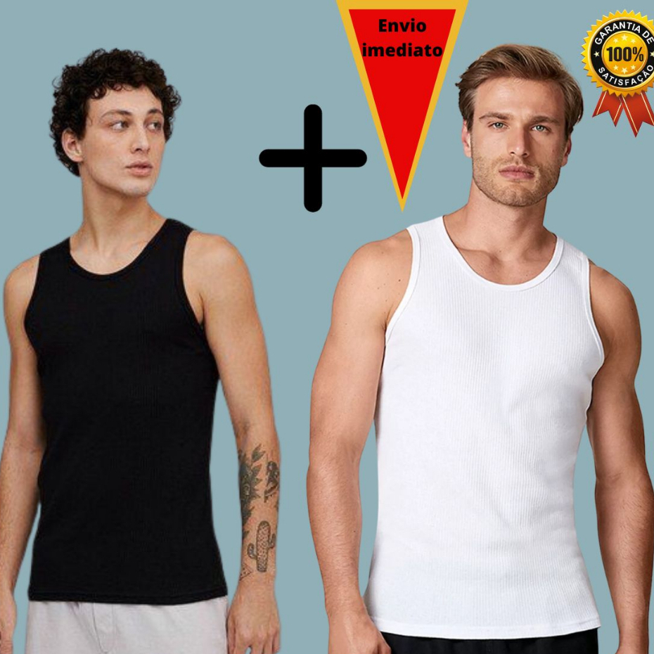 Kit 2 Regata Justa Americana Canelada Rapper, Academia Trapper Gringa Apertada Branco Preto Slim